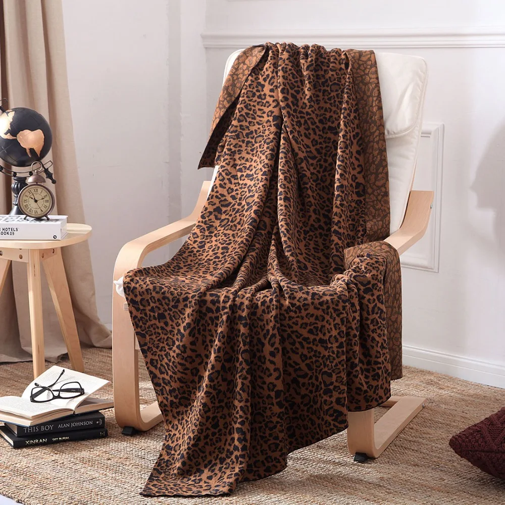 iDouillet 100 Cotton Brown Leopard Knitted Throw Blanket for Sofa Print Chair Throws cozy bliss luxury faux fur throw blanket animal striped print, non shedding double sided sherpa blankets super soft fluffy. Enjoy free shipping on most stuff, even big stuff. shop wayfair for the best print throw for chair. check out our chair throw selection for the very best in unique or custom, handmade pieces from our blankets &. Print Chair Throws.